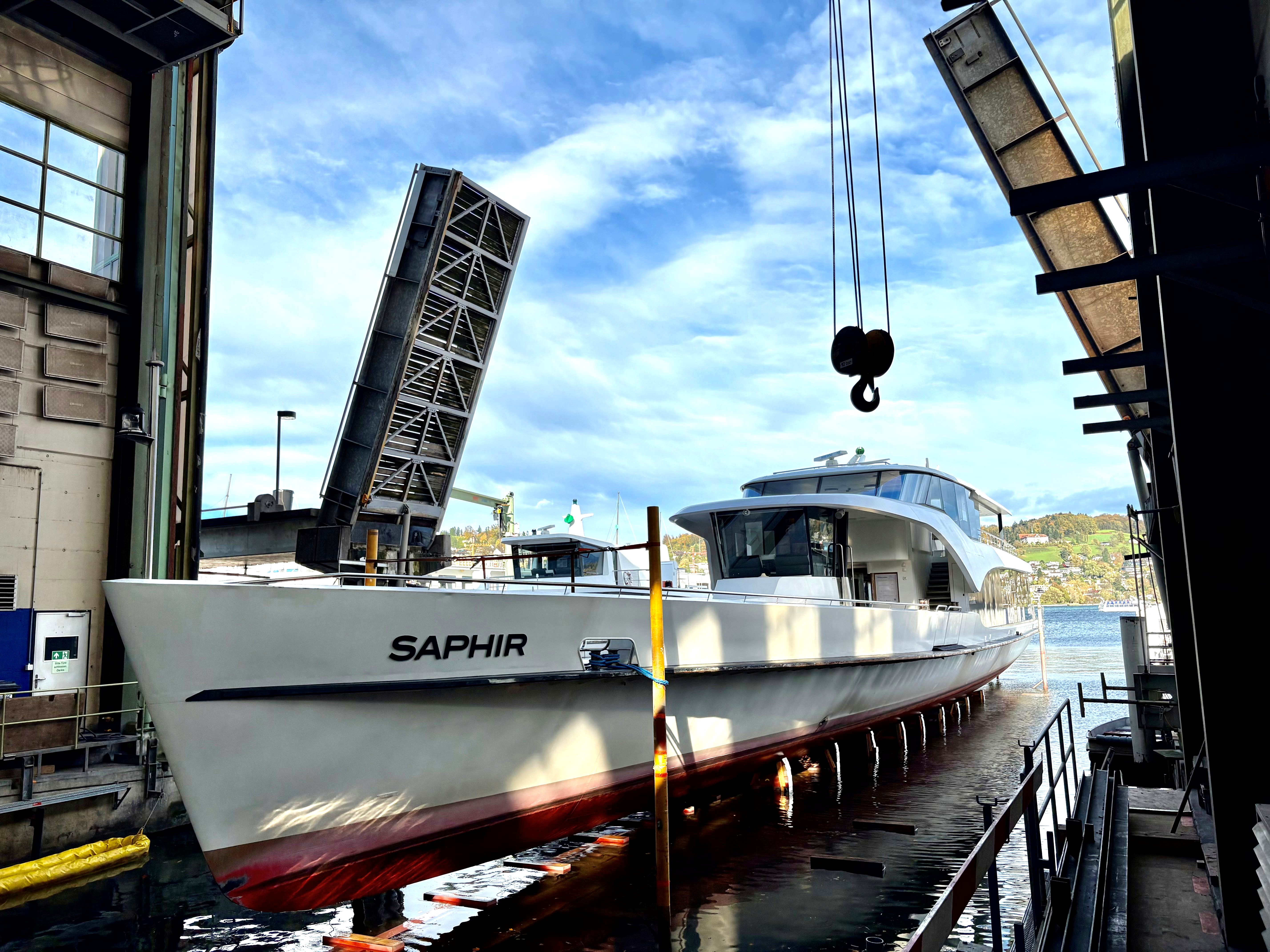 Das Motorschiff Saphir der Schifffahrtsgesellschaft des Vierwaldstättersees (SGV) AG wird ab dem 23. Oktober 2025 auf einen wasserstoffbasierten Antrieb umgebaut. Die 3 Dieselgeneratoren werden durch eine Brennstoffzelle und Batterien ersetzt und damit 50'000 Liter Treibstoff eingespart. Der Umbau erfolgt in der Werft der Shiptec AG. Ab Sommer 2026 wird das Schiff wieder auf dem Vierwaldstättersee unterwegs sein. Mit diesem Umbau ist das MS Saphir das erste Wasserstoff-Passagierschiff der Schweiz.